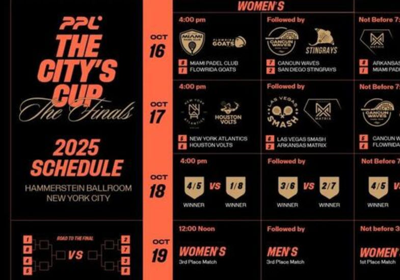 The Pro Padel League returns to New York City for its season-ending City’s Cup Finals, hosted at the Hammerstein Ballroom from October 16 to 19. The venue transforms into a padel battleground as the top eight teams from the regular season compete for the league’s ultimate prize.