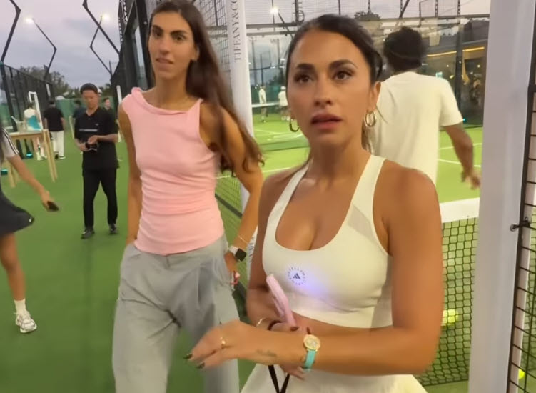 The encounter took place at one of the padel courts Roccuzzo regularly visits in Miami. Dressed in white and exuding a relaxed, down-to-earth vibe, she once again demonstrated the humility and poise that have made her a beloved figure beyond the football community.